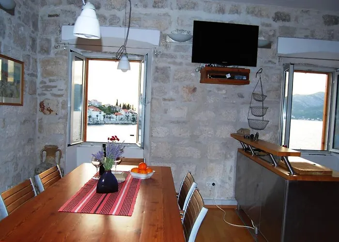 Overlooking the sea, the 1-room Korcula Sunset Apartman is just 500 metres from the Ispod Duvana beach in Korcula Town. Staying in this beachfront apartment, nestled within easy reach of the Roman catholic Cathedral of Saint Mark, guests can relax on a terrace.